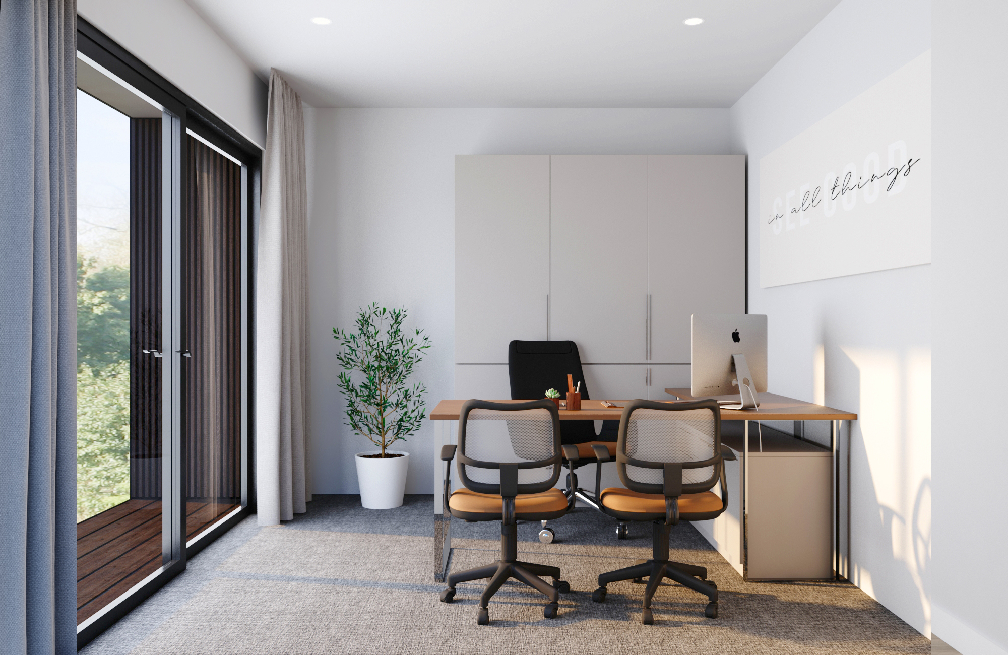 The Gem’s floor plan offers a flexible configuration designed to adapt to the way you live and work. Whether arranged as a focused home office, a modern living retreat, a thoughtfully integrated kitchen space, or a calm and private bedroom sanctuary, each layout is carefully considered for comfort, functionality and flow. Every option maximises the footprint while maintaining a refined, effortless aesthetic, allowing The Gem to transform seamlessly to suit your lifestyle.